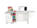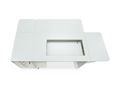 Expansive work surface with collapsible rear quilt leaf and right-side extension leaf keep your projects from pulling and falling on the floor