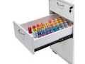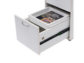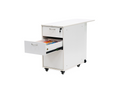 Large top drawer includes removable cover to create additional workspace and provide left-side support