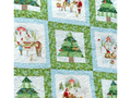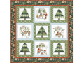 The Santa's Tree Farm Panel quilt kit features a charming winter wonderland design with Santa's Tree Farm. The nine blocks showcase scenes of Christmas trees, Santa with his reindeer, and festive activities in a snowy forest. Framed by a woodland-themed border in greens, reds, and whites, it creates a cozy, festive atmosphere ideal for holiday décor. This quilt is completed using piecing and would be great for a confident beginner. The finished size is 64″x64″.